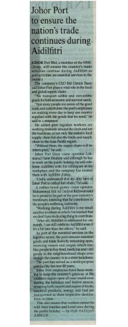 Johor Port to Ensure the Nation`s Trade Continues During Aidilfitri